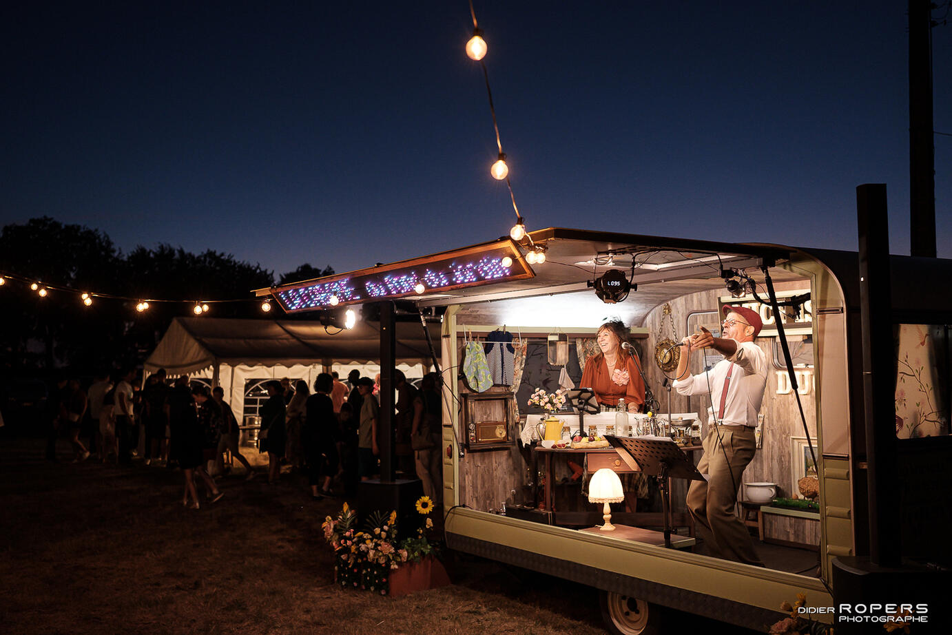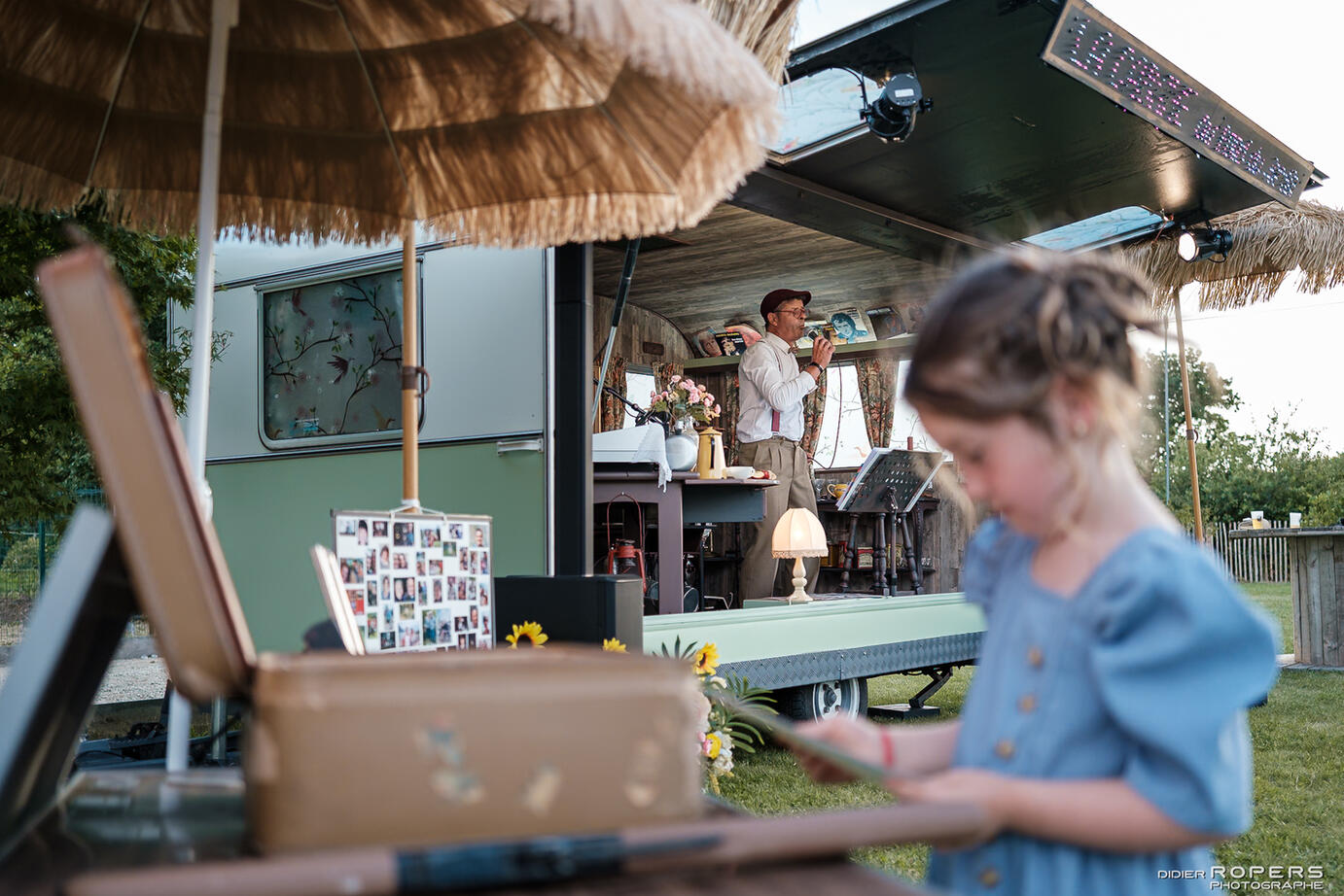 L'idée de disposer d'une scène roulante nous est donc naturellement venue afin de nous rapprocher de vous ! Nous nous sommes donc occupés à transformer une caravane de 1976 pour en faire la scène de nos concerts et pouvoir, grâce à ses mensurations parfaites, 2m X 3,50m, jouer n'importe où !