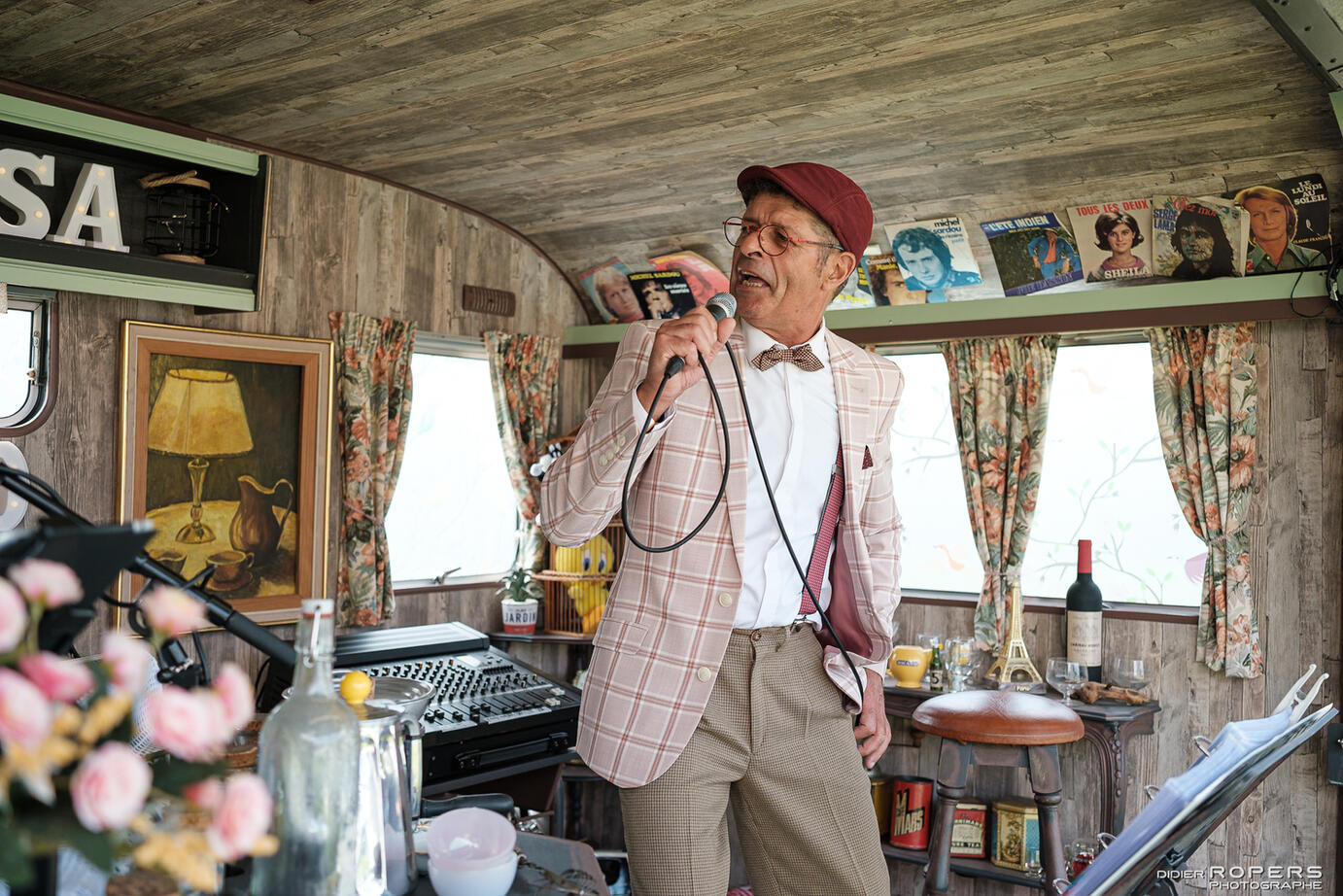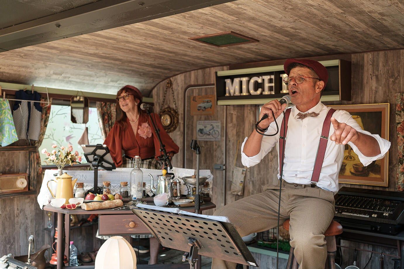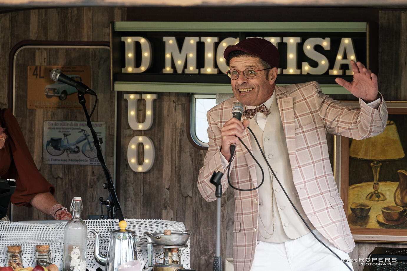 Une simple prise électrique et le Duo Michisa s’occupe de poser sa caravane-scène dans votre jardin, dans votre hangar, sur la place de votre village, sur votre marché, devant votre société... pour un concert de chansons sorties dans les 3 décennies 50's, 60's et 70's.