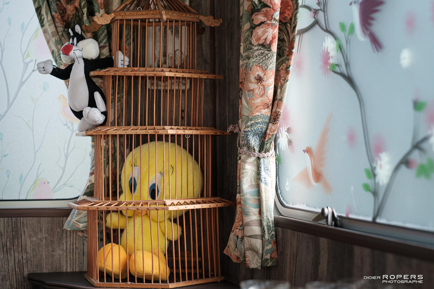 L'intérieur se veut ressembler à celui d'une cabane ou plutôt devrions-nous dire, une "carabane", des années 50, 60, 70... Une cabane qui vous surprendra, qui s'invitera chez vous comme un cadeau que vous ferez à vos invités...